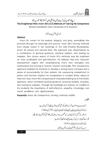 Keywords: Imam, Ali, Companions, training, methods, hadith.